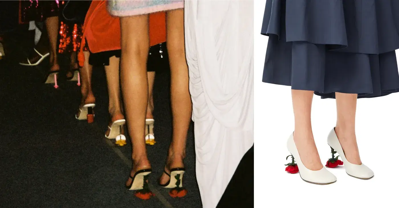 Kolejnym sposobem na rozpoznanie produktów Loewe jest przyjrzenie się obcasom. Buty z obcasami w kształcie czerwonych róż wchodzą w skład kolekcji wiosna-lato 2022. Kwiaty nadają obuwiu dramatycznego i jednocześnie romantycznego charakteru. Wybierając je, niejako uzupełniamy swoją stylizację nie tylko butami, ale i obiektem artystycznym.