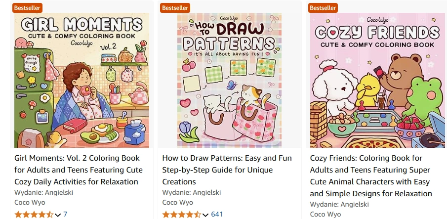 Przełomem było nawiązanie współpracy z tradycyjnym wydawnictwem – i to nie byle jakim, bo samym Penguin Random House. W 2023 roku Penguin podpisał umowę licencyjną na globalne wydanie trzech tytułów Coco Wyo w edycji anglojęzycznej: Cozy Cuties, Cozy Corner oraz Cozy Christmas. To ogromne wyróżnienie, świadczące o fenomenie marki – duży wydawca uwierzył, że urocze kolorowanki z internetowym rodowodem podbiją także rynek księgarski. I faktycznie, pojawienie się tych pozycji w ofercie Penguin Random House otworzyło Coco Wyo drogę do tradycyjnych księgarń na całym świecie. Zaczęto o nich pisać w mediach lifestyle’owych, polecać w zestawieniach prezentów świątecznych i pokazywać w telewizjach śniadaniowych jako ciekawostkę.
