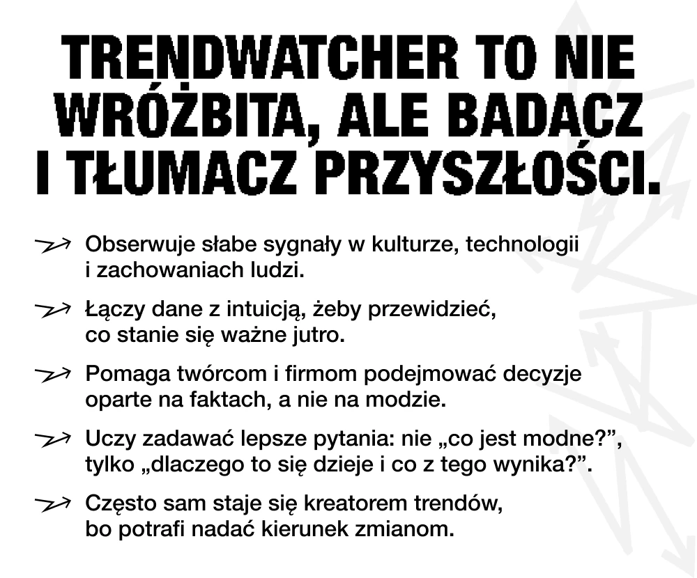 Trendwatching nie daje odpowiedzi na wszystkie pytania, ale uczy zadawać lepsze pytania i podejmować trafniejsze decyzje. A w świecie, w którym tempo zmian przyspiesza, to właśnie ta umiejętność staje się supermocą twórców.