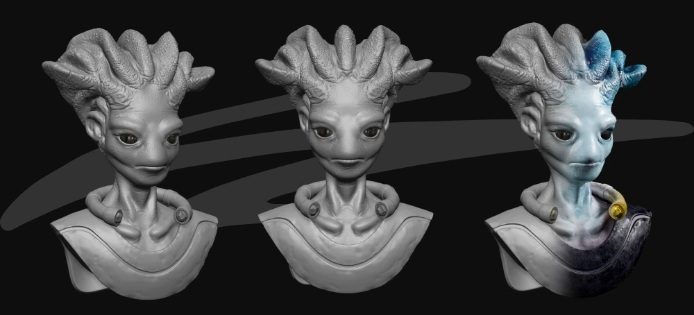 Ogółem z zadań, najwięcej mądrości dała mi retopologia. Rozumienie jej flow, jak pewne „babole" przy rzeźbieniu w ZBrushu potem komplikują sprawy. Od strony najlepszej zabawy? Każdy etap po trochu, tworzenie oczu, struktur na twarzy, nawet to tak wyklinane retopo! Na każdym etapie było albo coś, czego się uczyłem, albo mogłem doszlifować, to sprawia mi mega dużo radości, na moje szczęście w sztuce każda kolejna praca to rozwój.