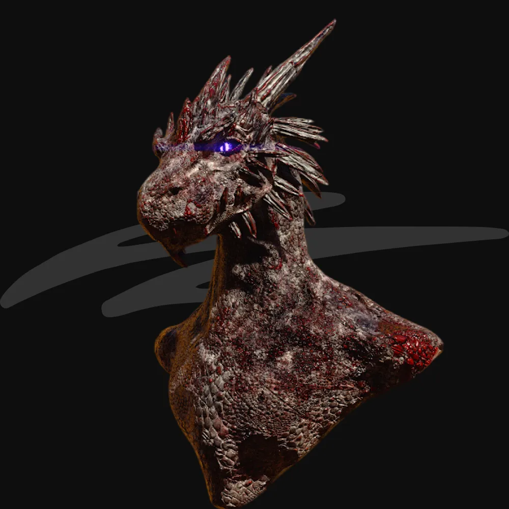 Chciałem rzeźbić, tworzyć postaci od dłuższego czasu. Mam zaplanowany cinematic, który chcę zrealizować, a jest mocno powiązany z pracą, jaką wykonałem na kursie. Kallar Vidir-Dra’Sinn, czy też „Smoczysko” jak go nazywaliśmy na kursie to efekt 4 lat gry, worldbuildingu w TTRPG tą konkretną postacią, która wzbudzała wśród community Dedekowego mocne, skrajne emocje, a właśnie taki efekt najbardziej kręci mnie w sztuce i to jest coś, co chciałbym robić jako artysta. Intensywnie i kontrastowo mi muzy grają.