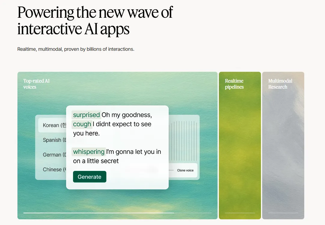 Generator, który oferuje ponad 120 głosów w 20 językach. Idealny, jeśli potrzebujesz voiceoveru do reklamy czy filmu. Możesz ustawić akcenty, ton i tempo, a nawet nauczyć AI swojego głosu. Aplikacja odtworzy twoją barwę, intonację i emocje.