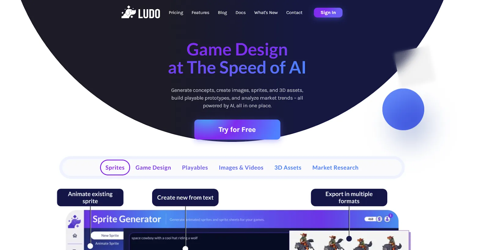 Asystent AI do badań i projektowania gier. Ludo generuje pomysły, assety, tworzy dokumentację projektową, a jego największą przewagą jest analiza rynku. Dzięki temu możesz śledzić trendy i wzorce w gamedevie oraz tworzyć gry, które nie starzeją się po tygodniu.