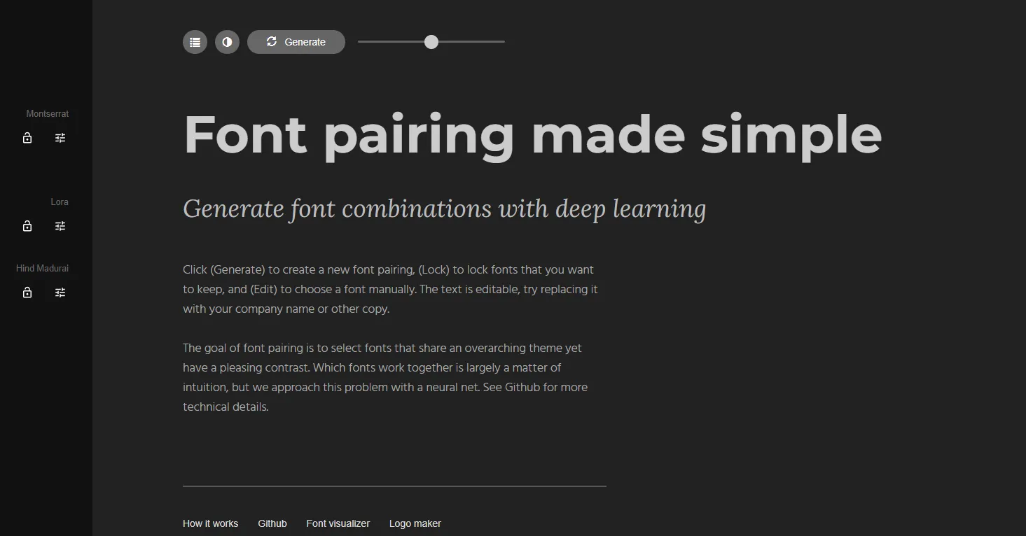 Jeśli wybór fontów jest dla ciebie wyzwaniem, to Fontjoy błyskawicznie ci pomoże. Aplikacja łączy ze sobą podobne kroje, różniące się pomniejszymi detalami takimi jak: grubością, szeryfami czy pochyleniem. System dobierania fontów działa tu podobnie jak w przypadku palet kolorystycznych. Program generuje zestawy dla stron, aplikacji i druku, a dodatkowo pozwala podejrzeć efekt np. na przycisku lub banerze.
