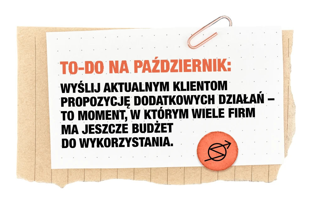Firmy spieszą się, by zamknąć plany marketingowe przed końcem roku, więc freelancerzy dostają sporo „pięć rzeczy naraz”. Jednocześnie ten miesiąc daje świetne możliwości nawiązywania współprac, które przejdą przez Q4 do początku kolejnego roku.