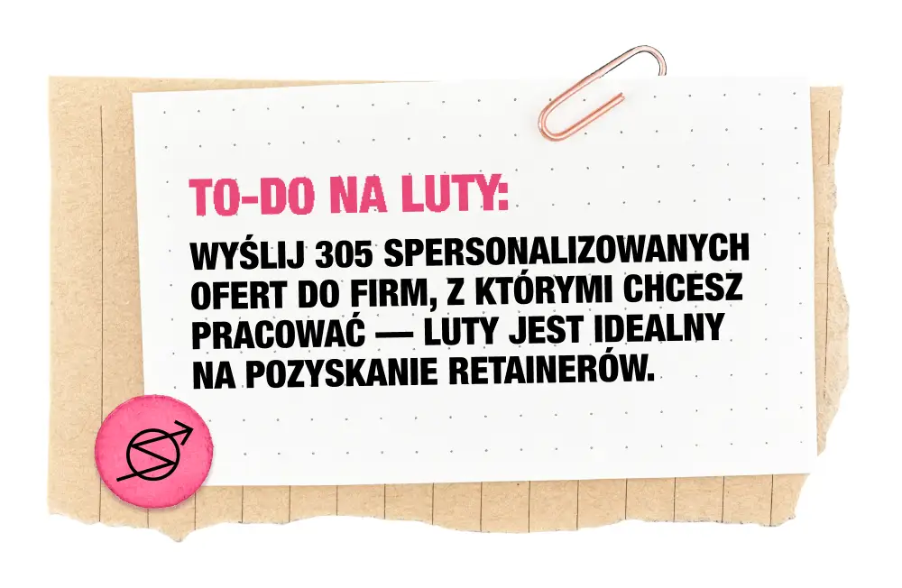 To jeden z najlepszych miesięcy na zdobywanie stałych klientów. Firmy szukają wykonawców, którzy udźwigną kampanie wiosenne i projekty zaplanowane na Q1–Q2, dlatego rośnie liczba retainerów i dłuższych współprac. To także czas, w którym rosną budżety na content i digital – zdecydowanie warto się pokazać.