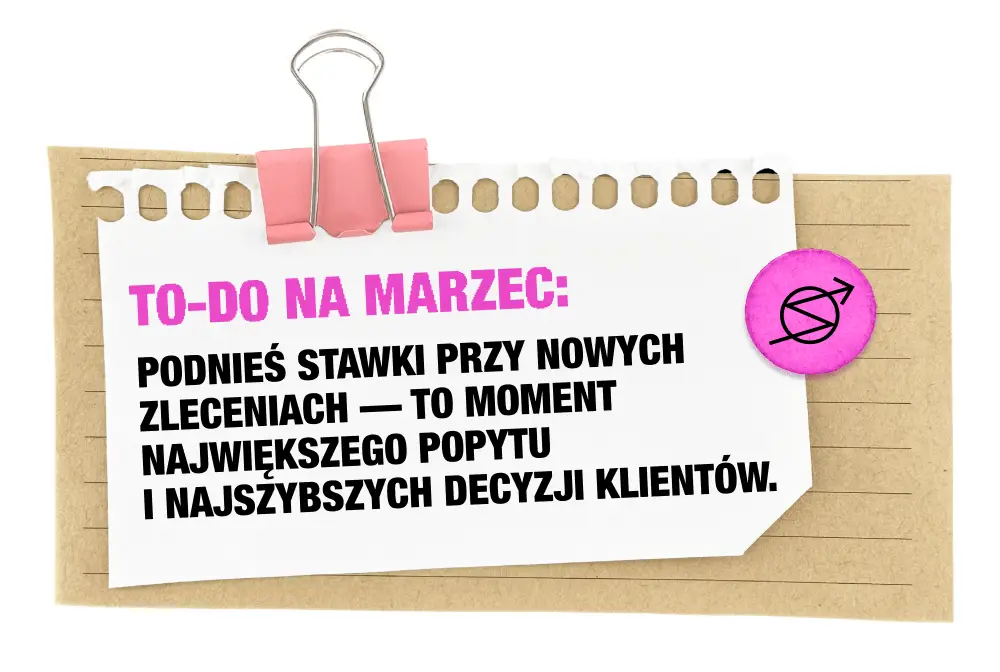 Tempo jest wysokie i decyzje zapadają szybko. Jeśli ktoś ma wolne moce przerobowe, to w tym miesiącu może je wypełnić po brzegi. To także okres, w którym klienci są gotowi akceptować wyższe stawki, bo liczy się czas i jakość.