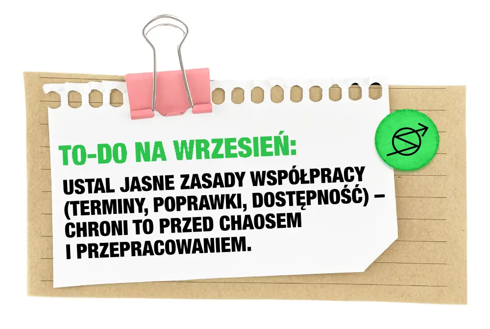Freelancerzy najczęściej dostają zapytania na strategie jesień–zima, produkcje wideo/zdjęciowe realizowane we wrześniu oraz pierwsze kreacje pod Q4. Sierpień jest dobry na lekkie przyspieszenie, ale wciąż daje przestrzeń, by poukładać pracę.