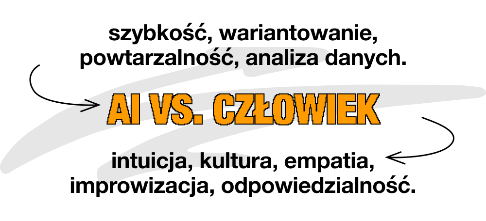 AI wygeneruje 30 wariantów, ale żaden z nich nie bierze pod uwagę strategii marki, kontekstu kulturowego, ograniczeń budżetu ani oczekiwań odbiorcy. Twoją przewagą nie jest tempo, tylko to, że od razu wskazujesz kierunek, który ma sens.