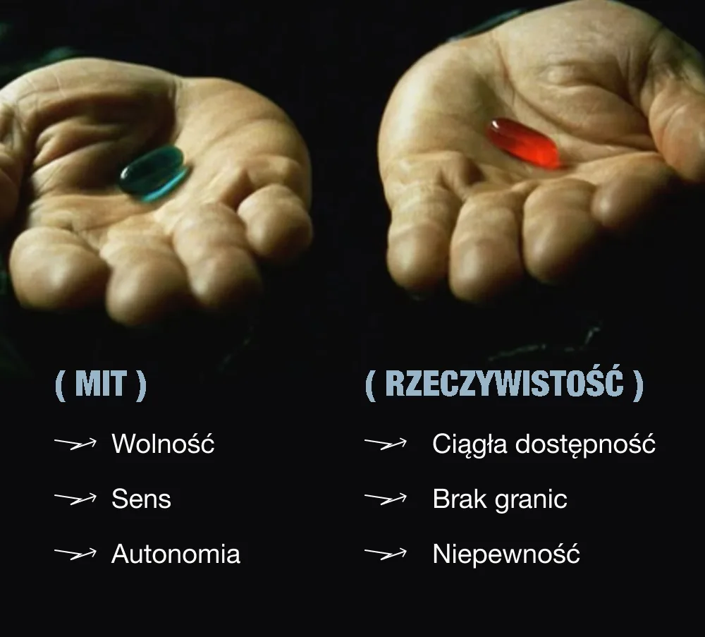 Tyle że w praktyce ta narracja bardzo często usprawiedliwia życie w permanentnym napięciu. Brak umów, brak przewidywalności, brak bufora finansowego. Chaos zaczyna być mylony z rozwojem, a ciągłe zmiany z kreatywnością. Tymczasem dla wielu osób to nie jest świadomy wybór, tylko efekt presji środowiska i braku realnych alternatyw.