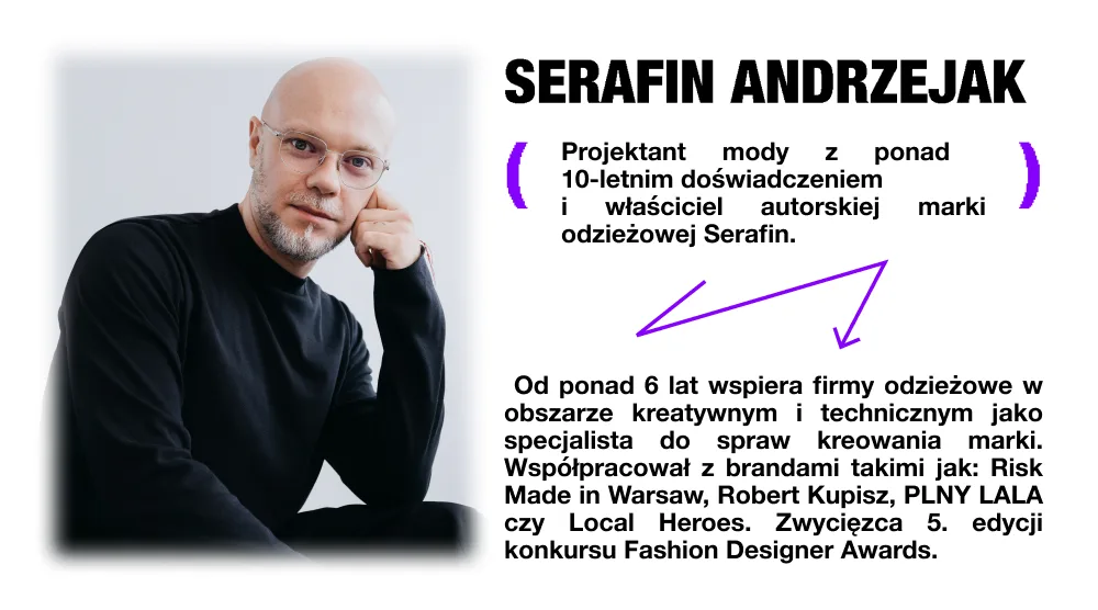 Serafin Andrzejak to projektant mody i właściciel autorskiej marki z ponad dziesięcioletnim doświadczeniem w branży, który już wkrótce poprowadzi kolejną edycję kursu „Projektant odzieży” w Skvocie. Nam zdradza, co naprawdę decyduje dziś o sukcesie w modzie, dlaczego talent to dopiero początek, a także jakie są realia budowania własnej marki w Polsce.